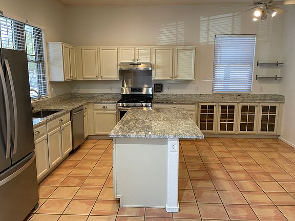 A 3 bedroom, 2 bath home with a modern kitchen in the unique and quiet Civano neighborhood. This cozy home has a spacious kitchen with granite countertops and a gas stove. It also has a gas fireplace, saltillo tile, and is freshly painted. There is a backyard with mature trees, and the neighborhood has a community pool, play area, tennis court and an activity center.