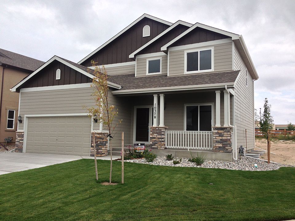 Huge Incentives on this Builder Blowout! This house is Brand new and the last deal fell thru because of financing! Corner Lot, in an amazing area! Club houses with swimming pools, rec centers, trails and parks. 25 minutes to gate 20 of Ft Carson, minutes from Peterson and Shriver. Close to local shopping! Call now to get a video WALKTHRU TOUR OF THIS HOME AND MANY MORE. FRIEND ME ON FACEBOOK TO SEE ADDITIONAL VIDEOS AND OTHER GREAT DEALS! FACEBOOK: STAN DALTON COLORADO SPRINGS ALSO ASK ME HOW I WILL PAY YOUR FIRST MONTH'S MORTGAGE PAYMENT! Bad Credit, or think you can't qualify-Think again? I work with a large network of lenders that can help even those with challenging situations. Amazing 4 bedroom home! Highly upgraded! Gourmet Kitchen, Granite Countertops even in the bathrooms! Stainless appliances! Wood Floors! Upgraded Cut Berber Carpet! Two Toned paint! 3 car Garage! Laundry upstairs. Huge Corner lot right next to Schools and parks.