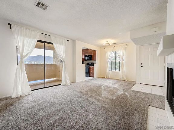 This lovely two bedroom, two bathroom upper-level condo in the community of Terra Vista in San Diego is a perfect home oasis! Its one-story open floor plan is filled with natural light and an inviting fireplace. The kitchen offers many modern touches such as black appliances, attractive countertops, wood cabinetry and a breakfast nook. Sliding doors provide easy access to a private view balcony. home features include ceiling fans, an inside laundry closet, and assigned parking. Residents of Terra Vista will also enjoy additional amenities such as a sparkling swimming pool, spa, and fitness center. Conveniently located nearby markets and restaurants and within one of the highest rated school districts in the area, this Home is truly a dream come true!