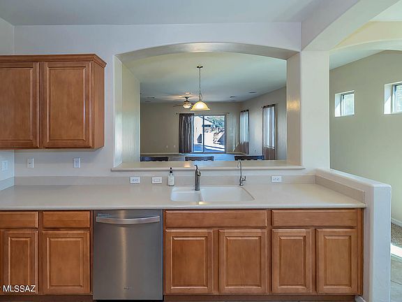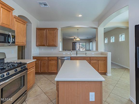 Pristine, lovingly cared for & well-maintained 3-bd, 2 full-bath home on a great privacy lot in the popular East-side Sierra Morado community. Features include new interior and exterior paint, a sunny dining nook, open breakfast bar, indoor laundry room with washer/dryer, several ceiling fans, surround-sound ceiling speakers inside and out, solar water heater, water softener system & a newly-installed RO water filtration system. Large primary bedroom has a walk-in closet and three bay windows w/views of Catalina mountains. Fenced back yard is designed for entertaining, w/custom flagstone pavers, built-in gas barbecue grill & gas fire pit with cozy seating area. HVAC was replaced in 2020. Sierra Morado is amenity-rich with parks, walking trails, playgrounds, sport court, grass dog park...
