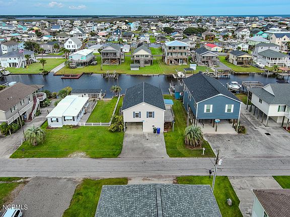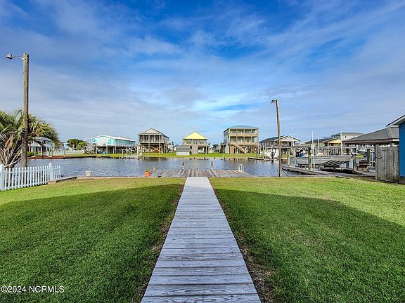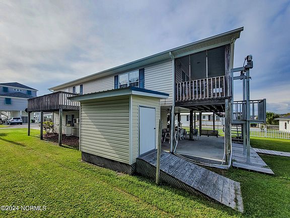 Welcome to 1038 1st St, a charming canal front home located in the heart of Surf City. This beautifully designed three-bedroom property features a spacious open floor plan in the main living area that flows out to a large screened-in porch offering picturesque water views. For added convenience, the porch has a lift to make transporting items to and from the home an ez job. This coastal retreat is perfect for both entertaining and relaxation. Beneath the main house, you'll find a cozy apartment style unit that has been renovated, complete with a bedroom, living area, 3/4 bath, and a laundry area. This versatile space is ideal for guests and extended family. There is also ample storage, a large carport with space for a sitting area, and a spacious backyard that leads directly to your own canal-front dock. Property is a few blocks from the beach and a short drive to Wilmington or Jacksonville. This is the perfect blend of peaceful canal-side living and convenient access to all the best coastal amenities.
