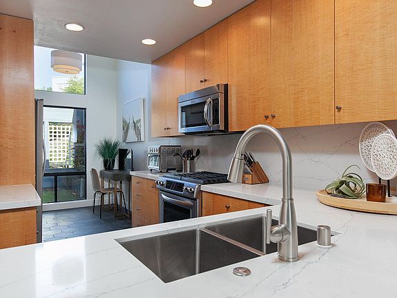 Beautifully upgraded ocean view home in Spindrift. Tasteful furnishings throughout with brand new engineered floors in main areas, new tile floors in kitchen and a remodeled powder room. One of only 10 in the complex where the master bedroom is on the main level. Secondary bedrooms are downstairs with the laundry room and share a large bathroom. Each bedroom has a patio and there is a large courtyard at the front entry. Featuring newer quartz kitchen counters, new custom light fixtures and ceiling fans, an expanded deck, custom fireplace surround and much more. Owner will cover up to $250 per month for utilities. Available minimum of three months and will allow longer term as well. No smoking allowed, owner will consider short term of 3 months through May 2025. Prefer no pets, but may consider upon approval. This is furnished beautifully with newer engineered wood floors. Ocean views from deck. 2 car garage. Pool and spa. Up the hill from Flower HIll shopping Center.