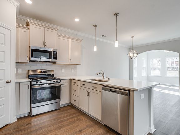 This two-car garage Underwood plan is a spacious three bedroom and two and one-half bath home. The first floor with nine-foot ceilings features a PET PAD and a beautiful kitchen with a nice sized pantry. This home has luxury vinyl flooring throughout the main level as well as Classic White Quartz countertops in the kitchen which compliment the Shaker flat panel glacier gray cabinets with modern hearth white tile backsplash. In this kitchen you will also have a gas stove and a stainless steel microwave above. The second floor hosts a primary suite with dual sinks in the primary bath and a separate shower and tub. In addition to the laundry room, a second full bath and two additional bedrooms, there is even a cute nook for extra decoration at the top of the stairs! The sunroom is off the great room, plus crown molding downstairs living areas and decorative garage door are just to name a few of the upgrades! The best part is- this home is ready to close!.