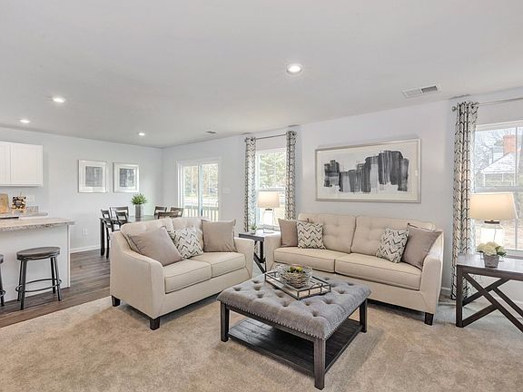 The Spruce Floorplan, To Be Built New Construction -3 bedroom, 2 bath, Ranch Style home with 2 Car Garage home! Home includes all brand ss appliances, espresso cabinets, Washer & Dryer, NEST Thermostat, Wifi Enabled Garage Door. PLUS Spacious yard space with 12x10 outdoor patio to enjoy the beauty treeline! All homes come fully sodded with a landscape package.