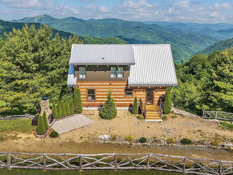 Feel like you're on top of the world in this impeccably built log cabin overlooking sweeping long range mountain views. Cozy and extremely well built cabin with two story great room, open loft, and a lower level family rec room. 3rd bedroom and full bath on lower level is perfect for guests with an inside or outside entrance. Full length covered back deck to enjoy the exceptional layered mountain views into Tennessee. Outdoor stone fireplace for cool mountain evenings. 15 acres of possibility including two more potential building sites, one of which has its own well, septic, and power in place, and both have great views. High speed fiber internet. 18/ x 24' barn/outbuilding for equipment, storage, or hobbies.