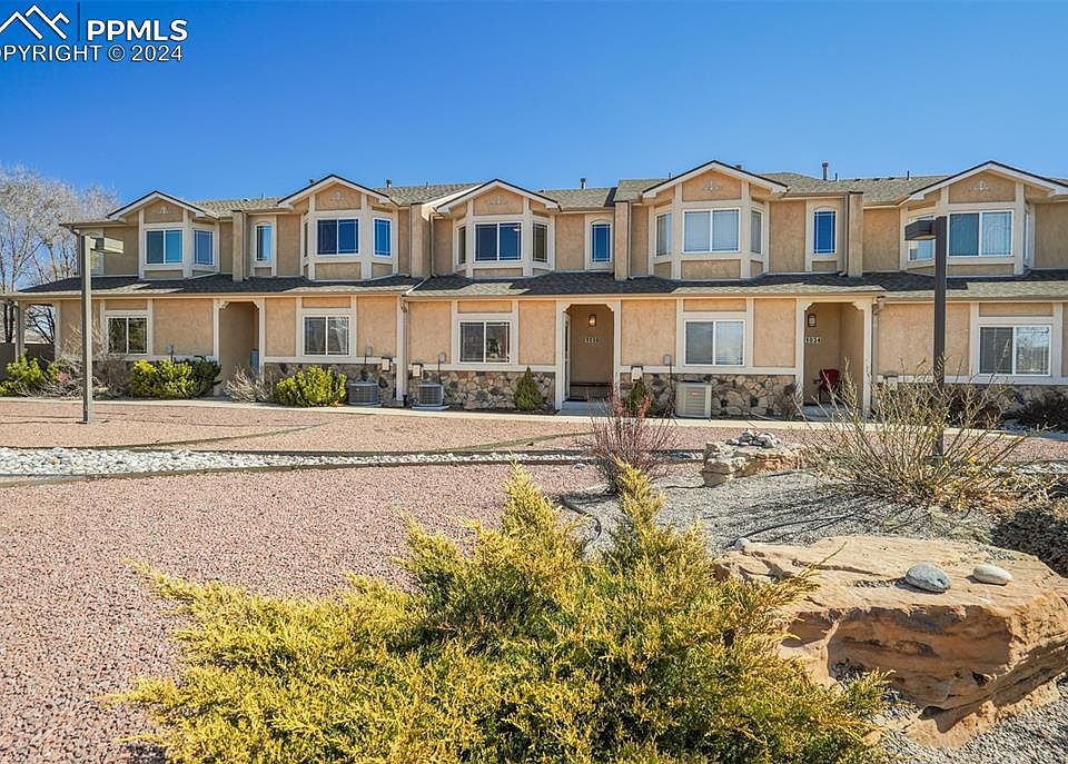 Welcome home to this adorable stucco townhome located in Fountain. Walking in from the front door is the living room with a cozy fireplace, the ideal spot to unwind after a long day. Be captivated by the breathtaking mountain views that greet you, enhancing the allure of this inviting space. The kitchen features a handy breakfast bar, perfect for quick bites or casual meals. With an attached 2-car garage and a convenient half bath downstairs, daily life couldn't be easier. Venture upstairs to discover the expansive master suite, showcasing a charming bay window and window seat, perfect for soaking in the serene surroundings. Revel in the full mountain range views, offering a picturesque backdrop to your daily routines. Indulge in the luxurious and large en-suite 5-piece bathroom with a spacious walk-in closet, ensuring ample storage for all your wardrobe essentials. Additionally, the upper level hosts another bedroom along with a full bathroom and a convenient laundry closet, making everyday living convenient. Experience the ease of maintenance-free living with no outside maintenance required by the homeowner, snow removal is also included in the low HOA cost, allowing you to spend more time enjoying the amenities this community has to offer. This townhome presents an exceptional opportunity to embrace a low-maintenance lifestyle without compromising on comfort or style. With its move-in ready condition, this residence is ready to welcome you home. Located in close proximity to Fort Carson, this townhome provides easy access to a variety of amenities, including shopping, dining, entertainment, and outdoor recreation. Whether you're exploring the natural beauty of nearby parks and trails or commuting to work, you'll appreciate the convenience and comfort that this location offers. Don't miss your chance to make this townhome yours.