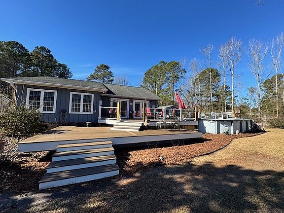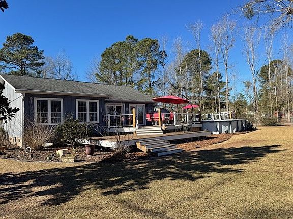 Feel right at home in this warm, inviting space! Featuring an open floor plan perfect for entertaining, this home includes *3 BRs (**3rd BR currently used as an office, no closet**). Enjoy the stunning composite deck on the waterside with an above-ground pool, a greenhouse/storage building, and a separate storage building that could be converted into a pool house. The kitchen boasts Corian solid surface countertops and the paid-in-full solar panels add efficiency. A perfect blend of comfort and functionality awaits you!
