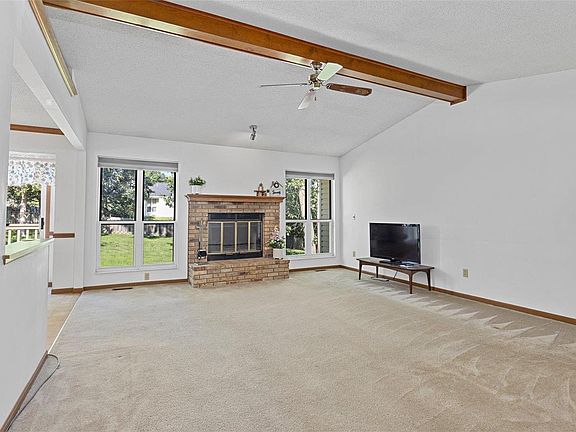 Meet CHARM & COMFORT with this Ranch-style, 3 bed 3 bath, 2000 Sqft OS 2 Car garage home. This spacious & inviting home features vaulted ceilings, decorative wood beams, Brick wood-burning FP with windows to enjoy your park-like view. The heart of this home lies in its well-appointed kitchen, complete w/ plenty of counterspace & Storage. The adjacent dining area or outside's relaxing XL deck is perfect for family meals & entertaining guests. The backyard is lined w/ wood fence & mature trees creating your serene, picturesque setting. Master Bedroom boasts privacy & convenience w/its own ensuite bathroom & W/I closet. The OS 2 car garage provides ample storage/workspace. Finished LL adds versatility w/sitting area, unique built-in fridge, full bath & spacious recreation area. Located in the highly desirable Harvest Estates Neighborhood, this charming & well-preserved home offers a variety of attractions, parks, & schools nearby, ensuring a well-rounded lifestyle for you and your family.