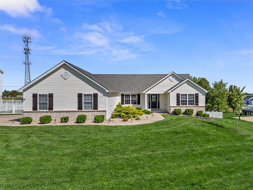 Prepare to be WOWED! This 4 BD, 3.5 BA ranch is updated, on-trend and sits on a .65 AC, level, fenced lot in Highland Estates. The curb appeal is impressive w/arch shingles (2024), partial brick façade, board/batten shutters (2021), lawn irrig, coachlights, and an O/S (23Dx31W) side entry, 3 car garage. Features inc 3,110 s/f of finished living space (inc the LL), a spectacular Kit (new in 2022), white cab, quartz c-tops, SS appl, tile b-slash, sm top stove (has a gas line), chimney range hood, brkfst bar, LVP flrs throughout, gas FP, DR, cust iron stair rail, split bdr plan, Mstr Suite has 2 W/I closets, corner soaking tub, sep shower, split dbl bowl vanities, humidifier and more. The walkout LL has a Fam/Rec Rm-Bath-Bdr-Office. Fresh paint, garbage disp and water softener all in 2022. Ext updates are being completed from recent storm inc roof-ridge vent-fascia wrap-siding as needed. There is a composite deck and the garage is finished. Ft Zumwalt schools. Spectacular, it’s a WOW!