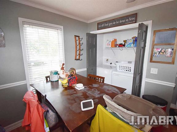 This house is a Doll House! Large open kitchen with built in desk and China Cabinet! Master bedroom has walk in closet. Deck on the back. Newer roof, HVAC and Hot water heater.This home is ready to move into! Large yard with two outbuildings for extra storage or work shop.