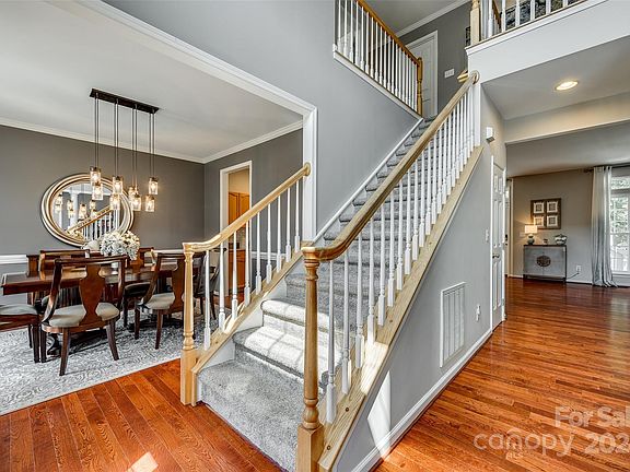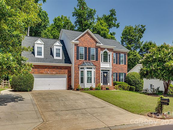 Beautiful stately 2-story partial brick front home in desirable Knightsbridge. This residence offers a private fenced backyard that backs up to woods. 2nd story foyer w/gleaming hardwoods is flanked by a dining rm & flex space ideal for a home office. The expansive kitchen boasts granite, wood cabinets, stainless appliances & a breakfast area surrounded by windows. Easy gatherings w/the open-concept great room w/fireplace. Upstairs, primary suite is a true sanctuary w/ trey ceiling, updated bath & large walk-in closet. In addition, two secondary bedrooms as well as a huge bedroom/bonus room w/ closet & add'l storage. Updates include 2017-roof, H2O heater, HVAC system, 2018-windows & exterior doors, 2020-gutter guards, driveway extension & back patio, 2024-crawlspace vapor barrier. Residents enjoy access to amenities incl: a clubhouse w/pool, sports courts, playground & sidewalks perfect for leisurely strolls. Convenient location to shopping, dining & only a 30-minute commute to uptown.