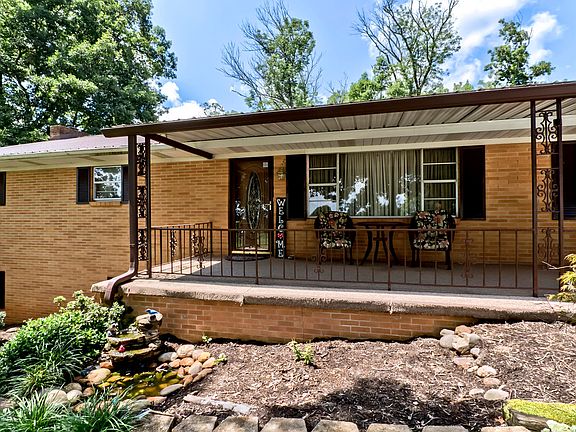 This spacious brick ranch is situated on an oversized 1.5 acre lot in a country setting with beautiful mountain views! Main level features living room, large eat in kitchen, 3 bedrooms, 1 1/2 bathrooms, a flex room, and a gorgeous sunroom. The finished basement offers a gigantic open rec room with cozy fireplace and fully equipped kitchen. There are also 2 additional rooms and a full bathroom located on the lower level. Laundry is located on both levels. The outside is just as grand as the inside and features a 4-car attached carport, 25x100 building with electricity, paver patio, gazebo area, lush landscape, and relaxing waterfall with a pond. You will fall in love with all this home has to offer!