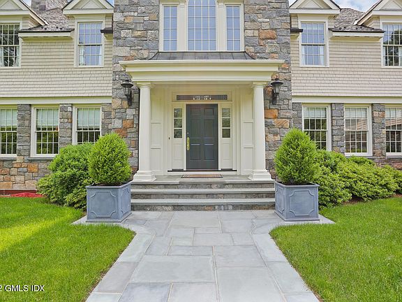 Prestigious Lake Avenue Residence in Greenwich, CT. This 5 Bedroom 7.5 Bath Elegant Georgian Stone & Shingle Manor, Tastefully Updated for Todays Living Sits High Behind Stone Walls on a Gated 4.19 Acre Hilltop Estate on Meticulously Landscaped Grounds. Enter the Grand Two Story Foyer to Exquisite High-End Finishes and Detailed Millwork Throughout. A Well Designed Open Floor Plan with Graciously Scaled Rooms Throughout. A Chef's Gourmet Kitchen with Center Island, Professional High-End Appliances, Breakfast Banquette adjoined by a Bonus Office Space and Family Room with Fireplace; plus a Library with Custom Built-ins, Wet bar, Fireplace and French Doors to a Covered Patio. Enjoy the Formal Living and Dining Rooms for Gatherings. The Second Level features an Elaborate Primary Bedroom Suite with Loft and Fireplace Private Sun Deck, Walk-in Closets, Two Spa-like Bathrooms with Walk-in Shower, and Jacuzzi. Three Additional Bedrooms with En-Suite Baths, Plus a Second Level Bonus Room Ideal for Nanny Suite, Gym, Media Room or Playroom. Magnificent Park-like Property that Offers Privacy and Tranquility with a Stone Terraced Pool and Spa, and Sprawling Blue Stone Patios. Three Car Heated Garage and Five Fireplaces Complete this Incredible Home - Ready for the Next Owner to Move Right in and Make it their Own! Brand New Slate Roof Installed in 2019, this Home has been Lovingly Maintained with Many Upgrades Over the Years and will Appeal to Most Discerning Buyers.