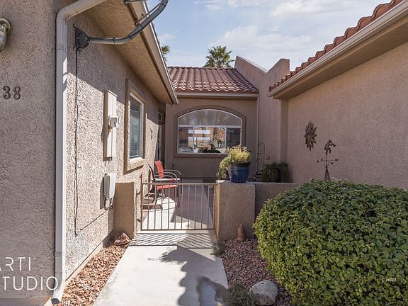 This beautiful townhome is located in a well maintained gated community. Enjoy morning coffee in the gated courtyard in front or under the covered patio in the east facing backyard with exquisite mountain views. The kitchen is great for entertaining with a long breakfast counter. Enjoy a master bedroom with mountain views and a spacious walk-in closet. A few more amenities this popular floor plan has to offer and did I mention the outstanding mountain VIEWS! You can enjoy them from the great room or the Master bedroom. Combine all this with membership to the Mesquite Vistas Sports Clubhouse which includes tennis courts, swimming pool, hot tub, gym, horseshoe pits and a room to use for parties. The clubhouse has a great menu for lunch or a snack by the pool. MAKE SURE YOU PUT THIS TOWNHOME ON YOUR MUST SEE LIST!!