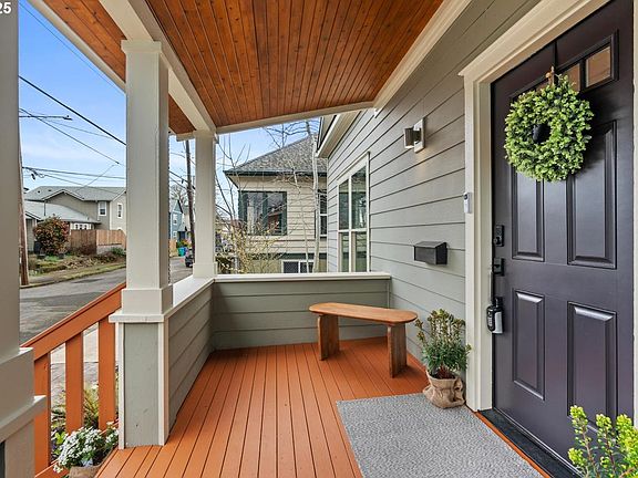 Discover this bright and inviting NE Portland home, perfectly situated between Alberta and Killingsworth. Remodeled in 2006 and refreshed in 2025, it presents freshly painted interiors. A welcoming covered front porch adds to the curb appeal. The main level offers a spacious foyer and an open floor plan, seamlessly connecting the sunroom, dining, living, and kitchen areas. French doors lead from the living room to a private backyard retreat with a covered wood deck and firepit. The kitchen features a large island, stainless steel appliances, custom tile counters, a subway tile backsplash, a gas stove, and a built-in microwave, with a window overlooking the yard. A stylish, newly remodeled half bath and a convenient utility room with laundry, including a new laundry sink and new shelving, complete the main level. The washer and dryer are also included in the sale. Enjoy comfort year-round with central air conditioning. Upstairs, you’ll find three spacious bedrooms, an office/hobby/play room, and two full bathrooms. The primary suite stands out with vaulted ceilings, a large deck, an en-suite bath, and a walk-in closet. The two additional bedrooms share a full hallway bathroom. Modern updates enhance the home’s appeal. The backyard also includes a large shed, perfect for storing bikes, gardening gear, camping equipment, and more. Enjoy the convenience of a driveway for off-street parking. Located in the heart of NE Portland, this residence is just moments from boutique shops, diverse dining options, and essential services. Plus, Alberta Park, with its playground and covered sports court, is only eight blocks away.