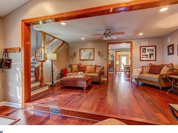 Absolutely One of Boothwyn's Finest! You Must See This Updated & Modern Colonial That Has been Meticulously Maintained! Property Features: Welcoming Formal Living Room with Hand-scraped Moroccan Walnut Hardwood Floors Throughout the Oversized Living Room and Dining Room. Gorgeous Eat in Kitchen with Newer Cabinets and Countertops and Lovely Tile Flooring. First Floor is Completed by Laundry and Powder Rooms. Second Floor Boasts Three Perfectly Sized Bedrooms With Custom Closets, Master Bedroom Features His and Her Closets, and an Updated Center Hall Bathroom (2013). Upgrades and Extras Include: Unfinished Waterproofed (2011), Walkout Basement with Ample Storage, 6 Speaker System in Home and Backyard, Fenced in Backyard with Huge Patio with Fire Pit, New AC Compressor (2009), New Roof (2015), Upgraded Electrical (2014), New Hot Water Heater with Expansion Tank (2011), and Gutter Guards on the Second Floor (2013). This One has it All! Call & See it Today!
