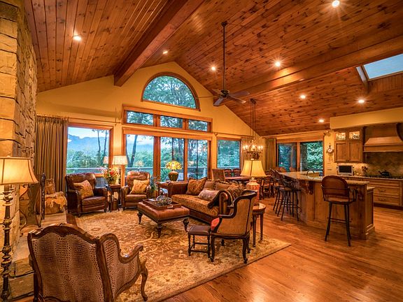 Spectacular Mountain home in Linville Ridge. Popularly known as "Ramos Roost" This home has all the upgrades and design features you would ever want. Very dramatic and level entry leads into a perfect living areas designed to pull in the astounding view of Grandfather Mountain. Light, bright and full of life! Large open rooms for entertaining and cooking. Beautiful Floor to ceiling stone fireplace and high beamed ceilings sets the ambiance of the living room along with its tasteful furnishings throughout.! Custom Cabinetry and built-ins in all the main areas. Over-sized deck facing the mountains for summer relaxing and summer parties. Luxury Master suite, office and guest bedroom on main level. Lower Level consists of a Home movie theater room, Billiards, wet bar and 2nd smaller living room and several additional guest bedrooms all with their own full-baths. Linville Ridge is a world class Country Club Community where,golf is elevated to an art form. At 4,945 feet above sea level, the golf course is the highest elevation golf course east of the Mississippi River. Property is also near tennis center, Spa, Dining areas, and gym. All furniture included with an appropriate offer!