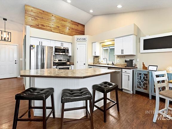 Welcome to this well kept single level home in the Marlin Subdivision. Located directly across from the community park and on a corner lot, this home has all you need. Boasting 3 bedrooms plus an office, this home lives much larger than its square footage. Great for hosting with a large open concept kitchen and living space that flows nicely into the east facing backyard which is great for hosting those nice summer barbecues. Escape to the spacious primary bedroom with a nicely updated large tile format primary shower, dual vanities and walk in closet. Enjoy the close proximity to downtown Meridian and all that is has to offer.