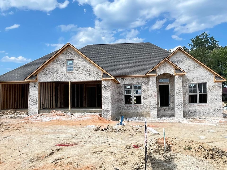 4 BR 3 BA with 3 car garage. All LVP flooring down, carpet on stairs and upstairs bedroom. Gas fireplace. Covered back porch. Quartz or granite in kitchen. Fiberglass base with tile walls in shower in master. Walk in closet with wood shelving. Split bedroom plan with 3 beds down 2 baths and 4th bed up with 3rd bath. Walk out attic storage. Open kit with large breakfast island. Cabinet pantry and sep laundry. What a spectacular floor plan.
