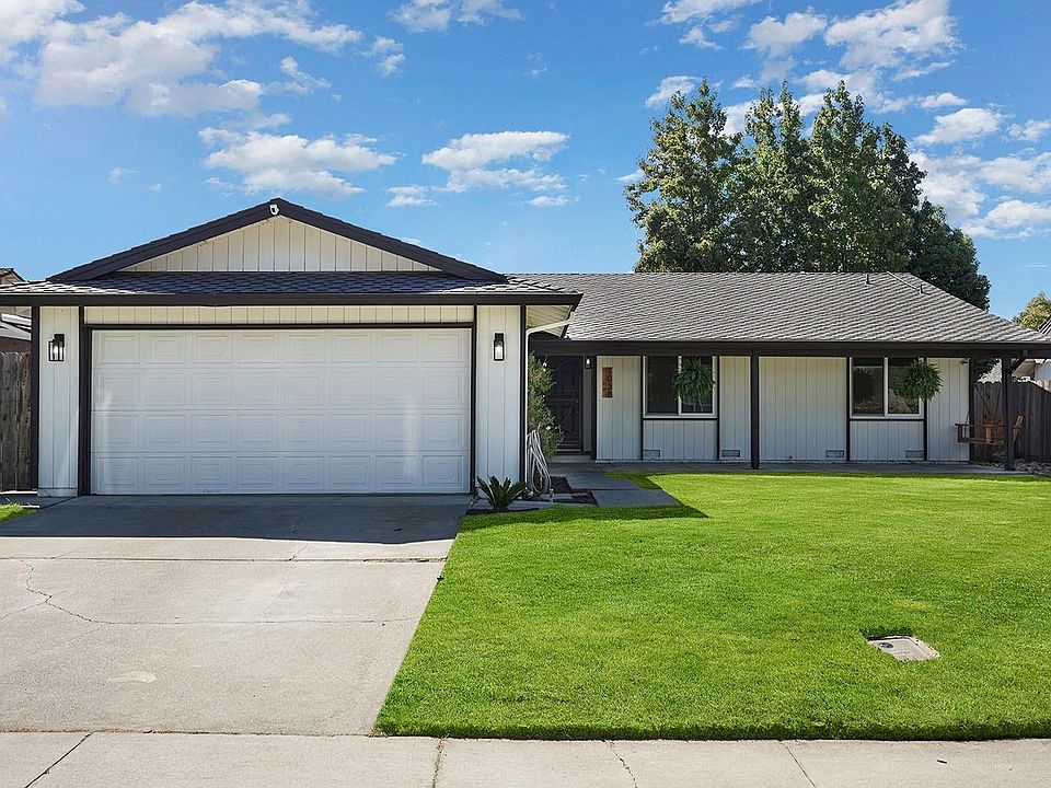 Discover your dream home in the serene and secluded Stonewood community of North Stockton. This modern farmhouse-style home is move-in ready and offers everything today's homebuyer could want: fresh interior paint, new carpeting, an open-concept kitchen featuring elegant white cabinetry, sparkling granite countertops, and brand-new stainless steel appliances. With major upgrades completed in recent years including a premium 50-year presidential roof, solar system, new HVAC furnace, upgraded electrical panel, new water heater, R40 insulation, and a 50 AMP EV outlet. The versatile den offers limitless possibilities: a cozy home office, additional living space, or even a 4th bedroom to suit your needs. Step outside to your inviting front patio, complete with a charming swing, or unwind under the covered back patio with ample space for family gatherings, relaxation, and gardening. This captivating home combines modern upgrades, energy efficiency, and a quiet community feel making it the perfect escape, yet conveniently located near all that Stockton has to offer. Not to mention the community comes with its own clubhouse and community pool. Don't miss the chance to own this hidden gem!