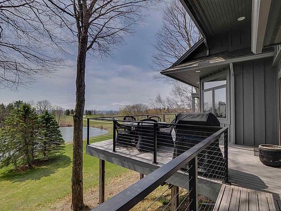 This exceptional Birchwood home offers incredible panoramic views of Lake Michigan and 2 large duck ponds. Six of the 10 rooms have water views. The home has been completely updated. The large kitchen is ideal w/ stainless steal appliances, expansive counter tops, spacious island, walk-in pantry, wet bar w/ beverage refrigerator & sink. The dining & living rooms showcase spectacular views year round. The welcoming brick floor to ceiling gas fireplace has a granite hearth. The finished lower level includes a large gathering area with walkout to a second deck, 2 bedroom, full bathroom and large storage room. The Belco stairs from the garage are ideal to bring deck furniture to be stored. Three bedrooms include walk-in closets. Additional improvements include new furnace to be installed 2023, hot water heater, new deck off main & upper level, new landscaped retaining walls. All lower level finishing are included in the sale.