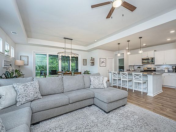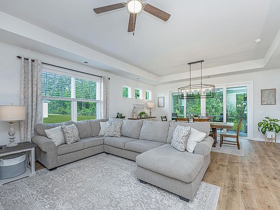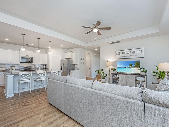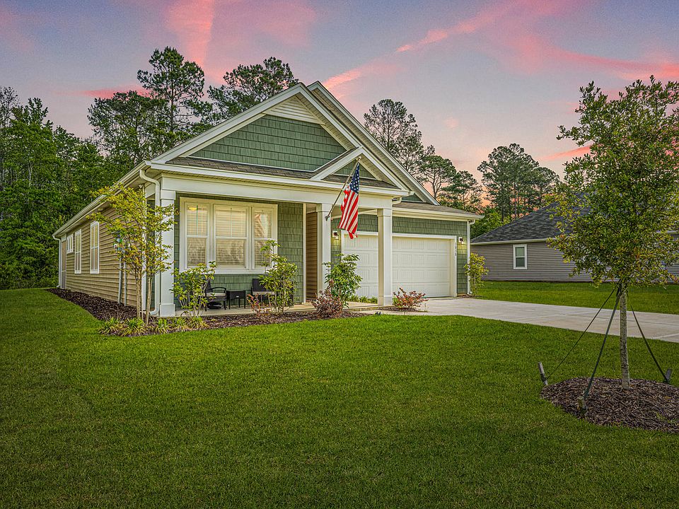 Fall in love with this immaculate 1 year new, Cantey plan with numerous upgrades in a desirable location in French Quarter Creek! Upon entering, you'll find LVP flooring throughout except carpet in bedrooms & tile in the laundry and bathrooms. At the front of the house is the secondary BR & BA next to the flex room with French doors that can used as an office, study, reading/play/craft room. Proceed down the hall/foyer to the open concept floorplan perfect for entertaining - the gorgeous kitchen boasts granite countertops, tile backsplash, under cabinet lights, stainless appliances & an updated kitchen faucet! Notice the spacious laundry room off the kitchen then you'll find the master suite at the back of the home w/ two closets, large bathroom w/ double vanities, shower & linen closetAll rooms (master, secondary BR, flex & family rooms) have ceiling fans. If you're looking for man cave space, look no further as the garage has been converted to a home gym complete with indoor/outdoor carpet and a minisplit for those warm Lowcountry days! While there is ample parking in the driveway, this can easily be converted back to a garage. Enjoy coffee on the large screened porch and enjoy the evening sunsets as you surround the fire pit in the backyard! A pond view in front and wood in the back make this a premium lot! Why build new when this house is move in ready!