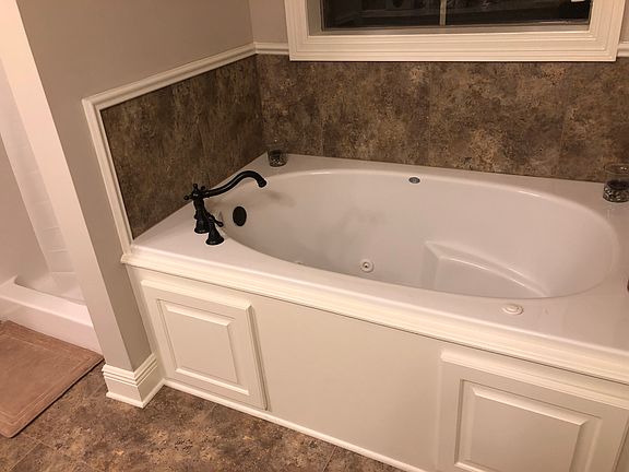 Brick veneer, accent plaster, split floor plan, North Pike School District