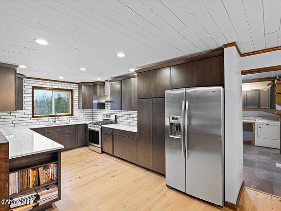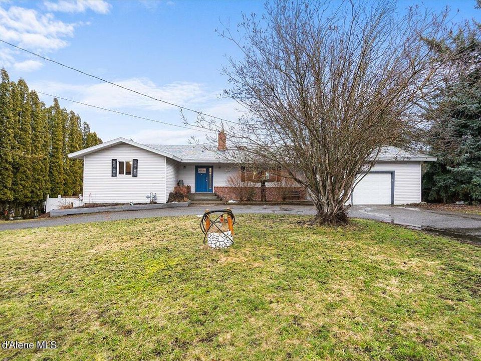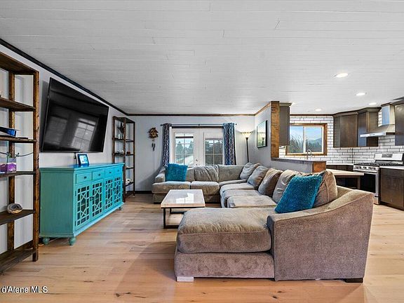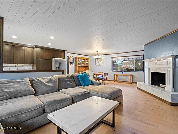 Multi-generational home located on corner lot offers a remodeled great room, with a cozy fireplace & views of Canfield Mountain. The newly renovated kitchen boasts subway tile accents, ample custom cabinetry, & a spacious pantry. All stainless appliances stay. The primary suite, has a huge walk-in closet. Downstairs, discover even more potential with an additional kitchen with all appliances, while the rest of the lower level awaits your personal touch to create the rooms of your dreams Value-added perks include a washer & dryer, along with a newer furnace & AC for year-round comfort. The 1.5 car garage is equipped with a frig, shelving, and a workbench with cabinetry. Outside, the fenced backyard provides a private oasis, with room for playtime, gardening, and relaxing on the covered porch. Two sheds included. Services and recreation options like golfing, hiking and Honeysuckle Beach on Hayden Lake not far from this property.