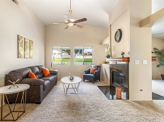 Step into this beautiful, well kept home and prepare yourself to be swept of your feet. Located in the gated Highland Springs Country Club community which boasts a well maintained executive golf course (membership included), pool, spa, and clubhouse with many fun things to do including billiards, gym, library, yoga room, poker table, and meeting room. The ideal floor plan consist of 2 living areas with dual sided fireplace, 2 large bedrooms, and 2 full bathrooms. Master bedroom has 2 closets with built ins and a wonderful view of the golf course, with access to your low maintenance backyard. The custom kitchen has been beautifully updated with granite countertops, gorgeous custom cabinets with pull out drawers and undercabinet lights, recessed lighting, top of the line appliances which includes a double oven, and ample amount of storage space including a pantry. Head outside into the backyard and you will be greeted with beautiful views of the golf course greenbelt. Citrus trees include oranges, lemons, cuties, and lime. Serenity awaits you! Come see this home today! Don't forget your golf clubs!