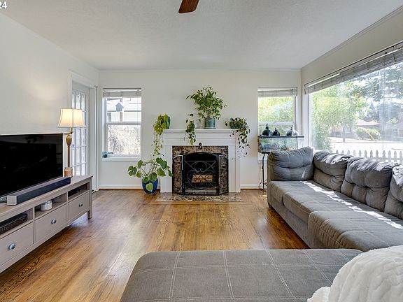 Darling home with a lot of charm ready for your finishing touches. Kitchen w/ granite and pantry. Two bedrooms on main. Partially finished basement with two bonus rooms + 2nd bath. Gorgeous Hardwood floors, cozy fireplace, bay window, AC, and more. Drive through garage to backyard. Covered back deck, Concrete patio for entertainment + huge fenced backyard with garden. [Home Energy Score = 5. HES Report at https://rpt.greenbuildingregistry.com/hes/OR10231769]
