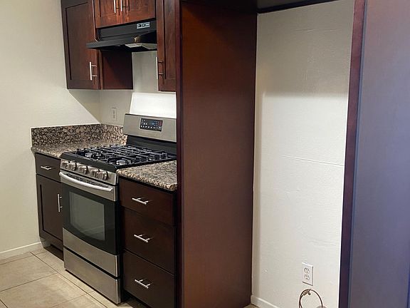 This is a large one bedroom one bath 4 unit building on a very quiet tree lined street. It is a one level building, so there is no one above or below you. Owner pays water and trash. Tenant pays gas and electricity. No pets allowed. Month to month tenancy. The kitchen and bath have been newly remodeled, with beautiful cabinets and granite countertops, along with a beautiful upgraded stainless steel range. It also includes an ice maker hookup for your refrigerator, with plenty of room for a large side by side frig. All ceramic tile floors throughout. The living room area is very spacious, and includes a large bedroom with lots of closet space. The bathroom includes a cabinet with granite countertops, and the shower enclosure has beautiful ceramic tile, along with clear shower doors. This unit includes a private fenced in patio, wall a/c, plus an enclosed shared garage, as well as a parking space right outside your front door. Tenancy is month to month. Absolutely no pets are allowed. $1000 deposit + $35 for each app fee. You must have good credit to apply for this apartment.