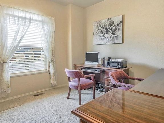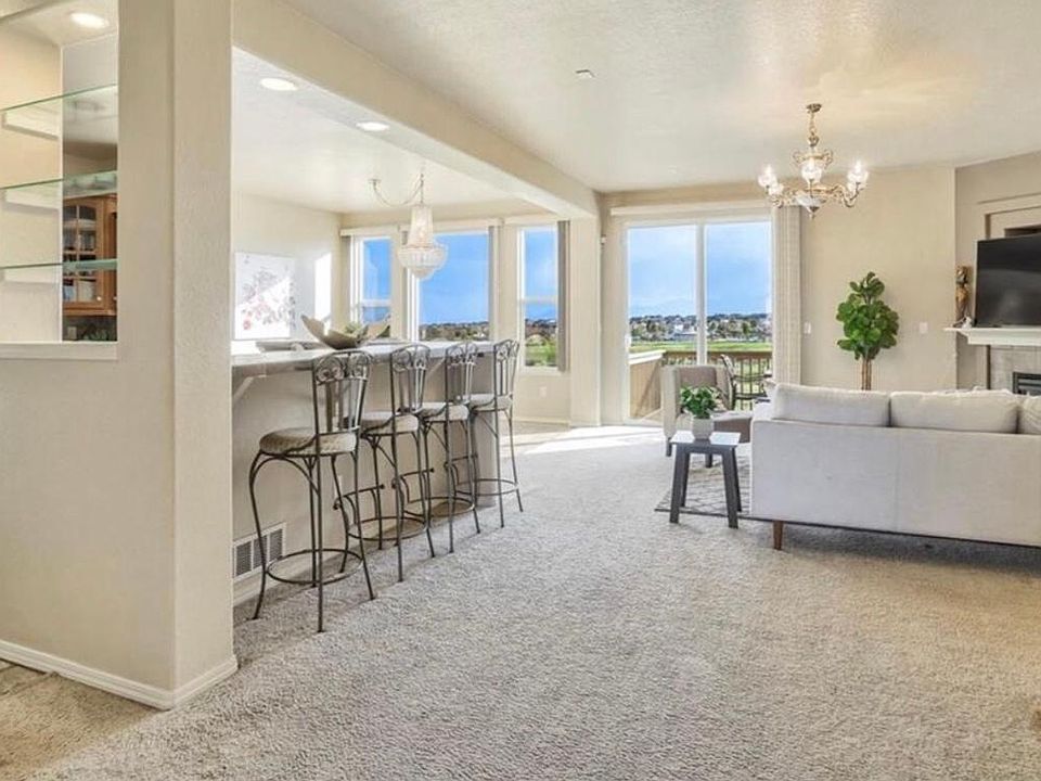 Stunning views of Pikes Peak from deck and dinning room. 2 bedrooms on main level 3 bedrooms on lower level. Laundry room off garage. Large kitchen.Views of golf course. 42,000 square foot recreation center with indoor and outdoor pools. D49 schools Meridian Ranch. Capital Peak Way Owner pays for water and recreation center fees. 2 car garage with storage