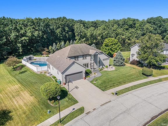 This immaculate custom built (Approximately 5,160 finished SF up and down) home boasts 5 bedrooms, 3 1/2 baths and a 3-car garage. The main level features a large primary en-suite with a private bathroom, walk-in closet and vaulted ceiling for added elegance. Entertain in style in the oversized kitchen, featuring gorgeous quartz countertops, a 10-foot island and all stainless-steel appliances included. With 9’ ceilings on both the main level and in the finished basement, this home offers a spacious and airy atmosphere throughout. The finished basement includes a walk out entry to the pool area, an oversized bedroom with egress windows, a full bathroom, kitchenette, gas fireplace, additional living space with home theater projector and utility room which was previously used as a home gym. The home has many other extras including a central vacuum system, Generac natural gas generator, four-season room and a large walk-in attic. Outside, overlook the private yard and 30’ x 50’ custom inground saltwater swimming pool (with heater) from your composite deck with a pergola - perfect for relaxation and entertaining on warm summer days. Located on a beautiful .91 acre lot with no rear neighbors, the mature, manicured landscaping features many perennials and flowering trees. Spend the afternoon fishing and kayaking on your private pond (owned by those adjacent to it). Invisible dog fence for Fido included too. District of Blue Ribbon, PHM schools: This home offers both convenience (located between Elkhart and Mishawaka) and tranquility. HVAC new in 2022. Don't miss the opportunity to make this stunning property yours!