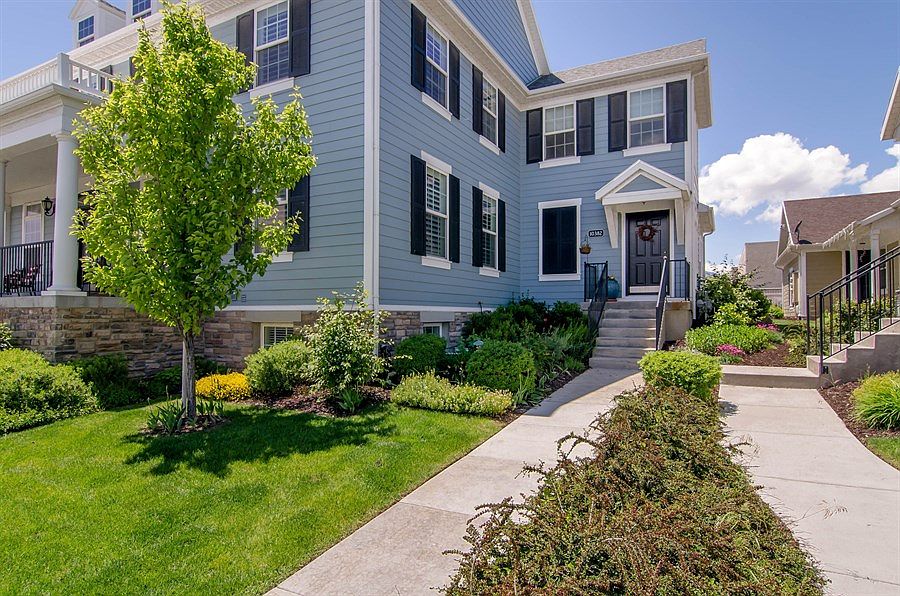 Classy Townhome with Lake view! Ample natural light though floor to ceiling windows with Plantation Shutters in Entry and Living Room. Beautiful Cherry Hardwood floors. Kitchen features Granite countertops, Stainless Steel appliances and eat in dining with access to patio retreat. Full Finished basement features surround sound entertainment system and extra bedroom/office. Plenty of storage in 3 extra large walk in closets. Allergen system A/C, Electric and Gas Dryer hook ups, and insulated garage and door. Patio plumbed for Gas Grill. Washer/Dryer, Refrigerator negotiable. Water softener included! Convenient access to all Daybreak amenities! Wonderful home for the savvy buyer who appreciates a finer finish & upgrades!