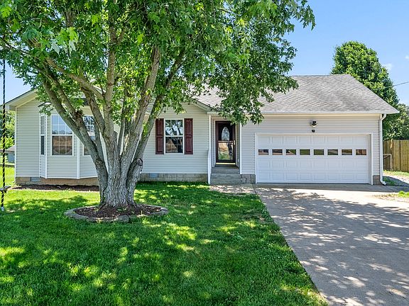 Welcome to your dream home! This charming one-level residence offers modern amenities and unparalleled privacy. Enjoy new HVAC, water heater, and appliances including a fridge and dishwasher, along with new vinyl flooring and all new ceiling fans. The spacious layout features 3 bedrooms, 2 full baths, and a custom accent wall. Nestled on nearly an acre of land, this property is perfect for outdoor enthusiasts. Hunt from your backyard or lease additional hunting land from the neighboring farm. Relax in the above ground pool with deck and slide, or entertain on the covered back patio. The fully fenced backyard includes an 8ft privacy fence on one side, a shed with attic storage and a cooled doggy room, and a trampoline and rope swing that convey. With no backyard neighbors and wide open fields for extra privacy, this home is a peaceful retreat. Enjoy fiber optic high-speed internet, a young apple tree, and the most epic 4th of July show from your neighbors. Just 2 minutes to Ft. Campbell