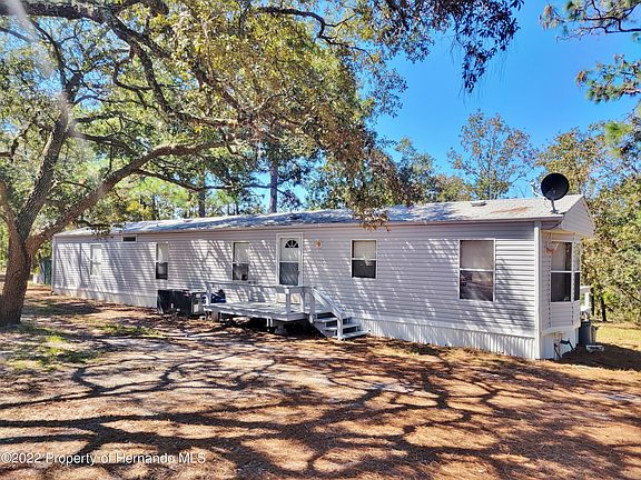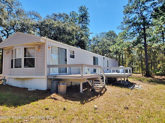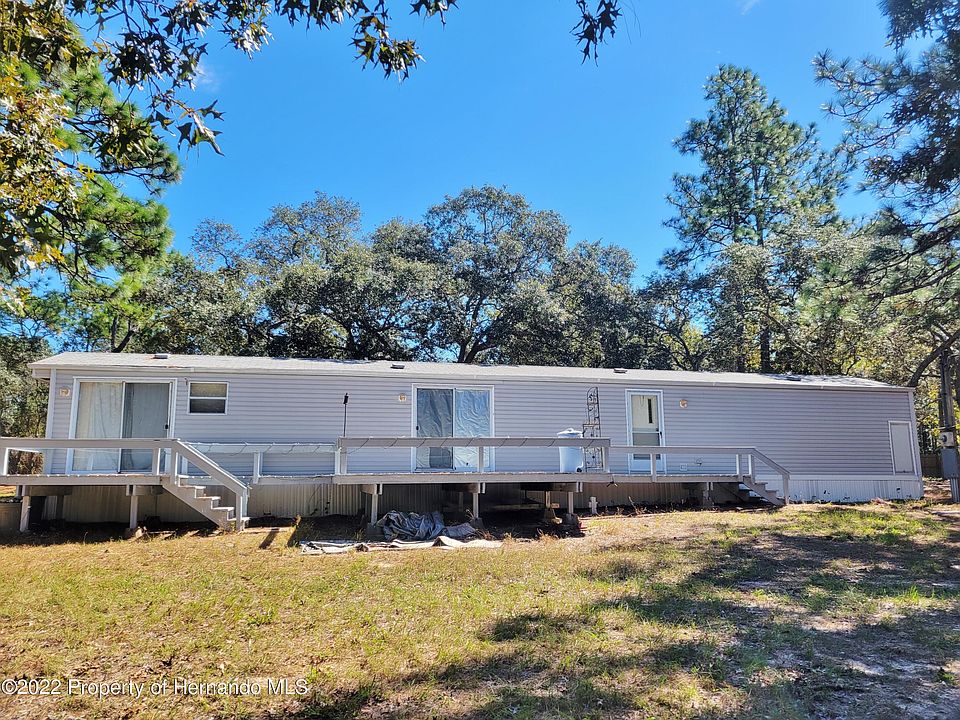 Beautiful wooded 2 acre lot in North Weeki Wachee with plenty of room for horses and other animals. Great place to build if you would like, there are many new homes built in the neighborhood. Property is close to US19 and easy access to the Expressway that now runs from Tampa to Crystal River. This single wide home has been well maintained and rented for a handful of years. Home has two bedrooms and two bathrooms and an inside laundry area. Master bathroom has a tub and a shower. Front sitting room off the kitchen could be great for an office space. Kitchen includes a dinette with built in cabinets. The large deck along the back connecting both sliding doors would be a great space for relaxing and taking in the tranquil scenery. The yard has plenty of space for boats, trailers, or RVs with electric hook up and a separate septic as well as room to build a garage for all the other toys. Most of the roads are paved but this one is still limerock but in good condition. Come tour our new home today!