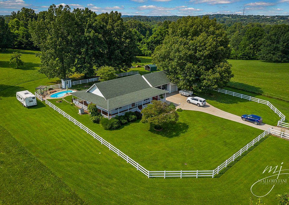 If you're looking for a beautiful place in the Ozarks, this is it! Not far from Branson, MO and just a short drive into Harrison, this location is perfect. Sitting on approximately 4.5 acres, the home features farm style wrap around covered porch, swimming pool, large shade trees and a peaceful atmosphere. Inside, the open floor plan is perfect for entertaining. There's 2 spacious bedrooms and 2 full baths as well as an office.There's a heat pump as well as Hardy wood burning furnace, plus gas log fireplace. The home is immaculate with beautiful decor throughout. You won't find many places like this!