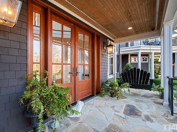 Overlooking the 27th fairway of the mountain course, this immaculate home, crafted in 2014 by renowned Brightleaf Homes, meets all of today's needs with an open floor plan, a spacious home office, numerous porches including a covered outdoor living space with fireplace and grilling station, and a pool. Enjoy an indoor-outdoor lifestyle perfect for family and entertaining while taking in spectacular distant views of Jordan Lake, downtown Chapel Hill and downtown Durham.