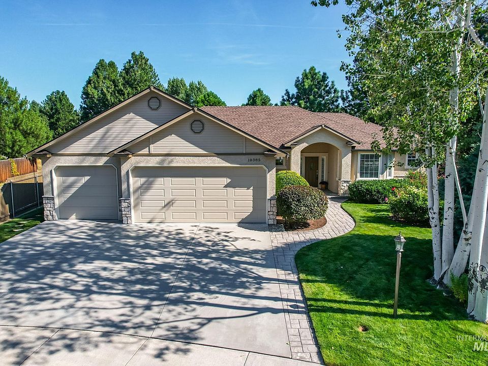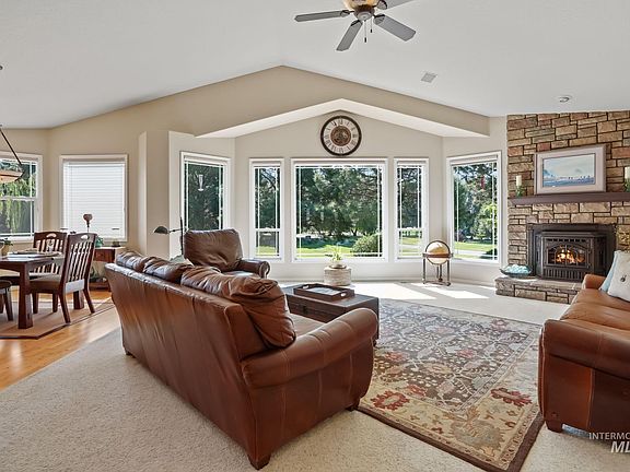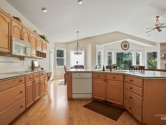 Single Level NW Boise Beauty with no rear neighbors, located against the foothills, offering great views and a ton of privacy. This open and airy floor plan is sure to please and provides an immediate peaceful state of mind. The great room flows perfectly with the kitchen and eating area and offers views in every direction. The Beachwood hardwood flooring provides character to this home. Activities galore from this close in location with Mountain Biking, Hiking and exploring out your back door. The 4th bedroom can be used as a den. The Master bedroom offers a large walk in closet, private patio, fireplace, separate shower and oval jacuzzi/soaking tub. Central Vac included. Multiple patios provide room to relax, space to enjoy the foothills, the wildlife and views that go on forever. Surround Sound Speakers throughout the home.