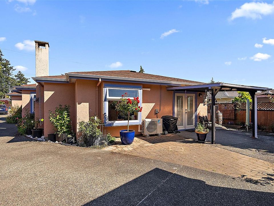 Tucked well back from the road, this home offers exceptional peace and privacy—your own private oasis. Full of surprises, it includes a detached garage with an adjoining workshop and a sunny, low-maintenance lot. The southwest exposure is ideal for cultivating veggie gardens or just relaxing around the beautiful flowers. Designed for comfort and accessibility, the bright one-level layout features generously sized rooms and a wide hallway. There are 2 bedrooms and 2 bathrooms, including a renovated main bath with a large walk-in shower, heat pump and new hot water tank. The spacious kitchen and living areas flow to a sunny covered patio perfect for summer entertaining, while an electric fireplace adds warmth in winter. Functionality and a desirable Sidney location complete this special package. Ask for the list of upgrades as there are too many to list. Book your showing now!