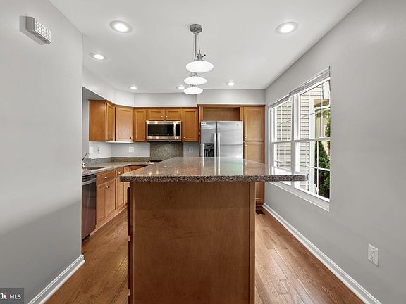 Located in popular Hickory Ridge is this upgraded townhome featuring rich hardwoods spanning the main and upper levels, a front kitchen equipped with a bright double window, sleek quartz counters, raised panel wood cabinetry, stainless steel appliances, a center island with breakfast bar, and a view of the living room and dining room. At the end of the foyer you find a dining room with a pass-through window to the kitchen for ease in serving and recessed lighting that carries to a light-filled living room with a central fireplace and a glass slider stepping to a low maintenance Fiberon deck. The owner's suite presents wooded views, a built-in armoire, double closets, and a private bath with a LED mirror, a walk-in shower with color changing LED overhead, Bluetooth speakers, penny tile, plus stylish surrounds and built-in bench. Additional space is found in the lower level highlighted by a rec room with a full bath, a laundry and utility room, extra storage, and a walkout to a paver patio with a wooded view. There are 2 assigned parking spaces, #33 and #74. Adding ideal convenience to everyday life, this home is just moments away is shopping, dining, entertainment, parks, commuter routes, and more!