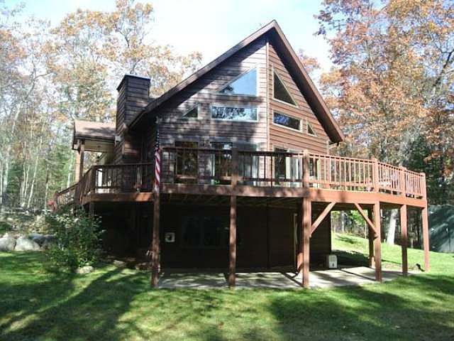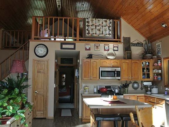 Classic Northwoods Cedar sided chalet home with a wall of windows, open concept main floor living , cathedral ceilings and a massive wrap around deck/front porch. Main floor master suite features patio doors to the deck, a walk in closet and access to the oversized bathroom - with a soaking tub and separate shower. Practically new stainless steel appliance package and island in the kitchen and a floor to ceiling fieldstone fireplace in the great room. The loft offers nice elevated views is currently being used as a bedroom. The lower level is finished with a large family room with wet bar and ceramic tile floors, a bedroom and an additional bonus room and a full bath. The adjacent lot is included - so there is plenty of space to build a garage. There is a large yard, plenty of trees for privacy and the deeded access is just down the street. All of this located in a recreational area - close to Willow Flowage, thousands of acres of public land and ATV and snowmobile trails.