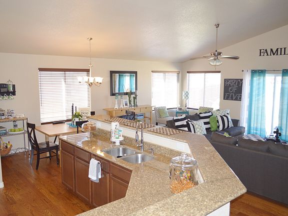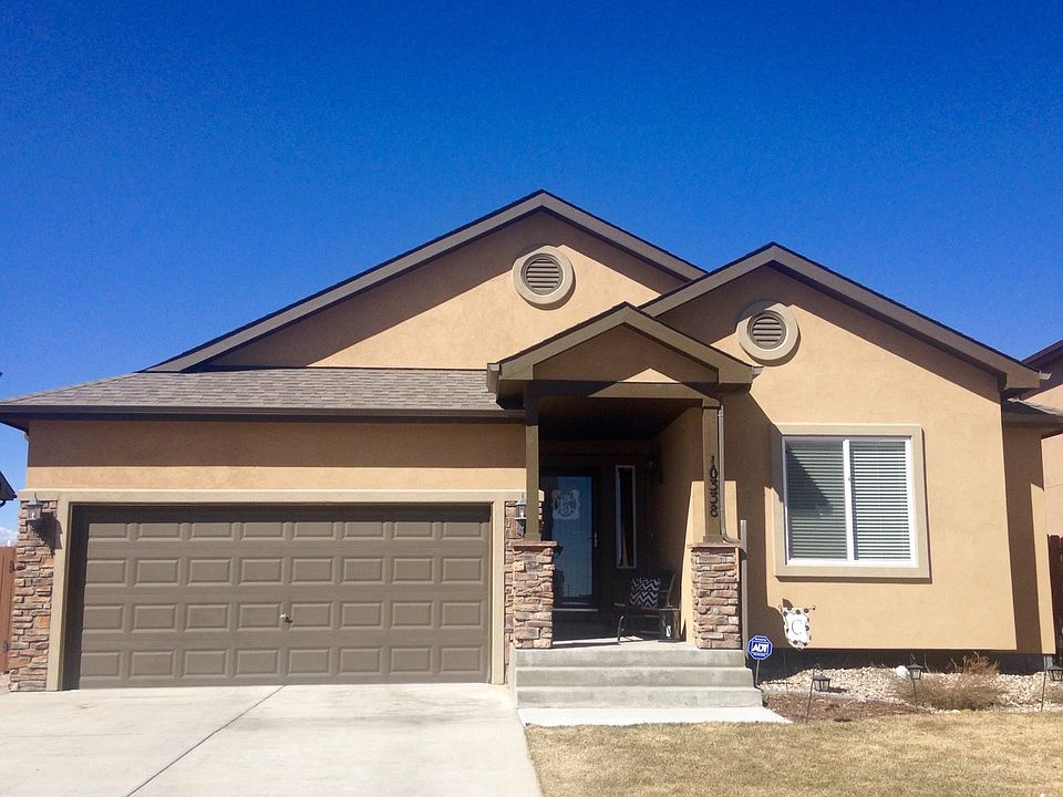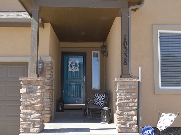 New to Market....Beautiful Stucco Ranch Home located in Meridian Ranch! This immaculate 5bedroom 3bath shows like new. The spacious, open concept main level living boasts large vaulted ceilings, hardwood floors and custom blinds throughout. The gourmet kitchen shows off stainless steel appliances, 42in birch cabinets, granite countertops with hi top bar seating. The main level master suite enjoys a lovely 5 piece master bath (granite counter tops and birch cabinets) and a sizable walk in closet. In addition, the main level entails a full bath (granite counter tops and birch cabinets), laundry and 2 sizable secondary bedrooms. The extensive 1600+ square foot garden level basement includes custom blinds throughout, 2 additional bedrooms and a full bath (granite counter tops and birch cabinets). The basement level utility room is equipped with a necessary mitigation system. The 2 car garage provides an access door to side of home. The front yard is fully landscaped all inclusive of a sprinkler system. The fully fenced in backyard includes partial landscaping, breezeway and sod. This charming, cozy ranch home is nestled in the highly regarded Meridian Ranch neighborhood; with access to all of their fantastic amenities and walking distance to Meridian Ranch Elementary and Falcon High School.