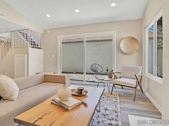 Move in ready 3 bed, 2.5 bath, 1,410 ft.² townhome in a quiet neighborhood in Santee. This beautifully renovated home features brand new luxury vinyl flooring, paint, and recessed lighting. The first floor includes the upgraded kitchen with brand new cabinets, countertops, and stainless steel appliances, a half bath, and the living room featuring a fireplace. All 3 bedrooms are nestled upstairs with 2 full baths also newly renovated. This home also features a private enclosed patio and attached two-car garage. Low HOA that includes a community pool, park, RV parking and bbq. Great proximity to all Santee has to offer!