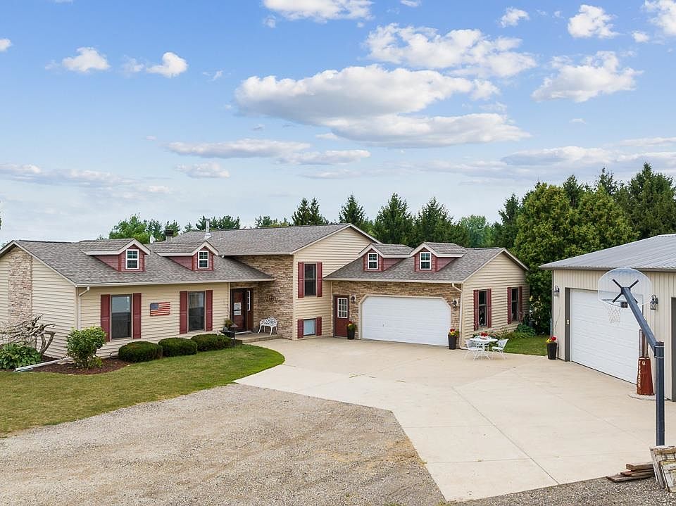 Private Secluded Country Estate! Hilltop setting w/awesome panoramic views all season. Great property for entertaining! Sharp, remodeled 3,000 +/- sq ft, 4 bdrms, 3 baths, multi-level on 3 AC MOL. Zoned Rural Ag in Winn School Dist. 30x40 Cleary building w/concrete flrng for your toys or a horse. House light & bright w/lots of big wndws, white wdwrk & drs. Expansive GrtRm 27x23 w/hard surface flrng, peaked ceiling & fpl opens to the gourmet kit w/abundance white cabs, brkfst bar seats 6, tons granite, SS appls, glass tile bksplsh, 2 pantries. Access to tiered deck w/2 waterfalls & patio. 4 spacious bdrms on one level w/lots of wndws & palatial master w/WIC, bath w/granite & access to deck to enjoy gorgeous sunrises, sunsets & country views. 2 addl remodeled baths. Home offc w/WIC or addl master. FamRm w/walkout to patio. Bonus sub bsmt approx 837 sq ft w/dbl wide stairway to exterior. Gazebo to enjoy the lovely grounds & views. Updates: 2017 & 2019 roof shingles, siding & stone accents. Newer energy efficiency furnace. Great location close to numerous Forest Preserves, I-90/39/20. Seeing is Believing!