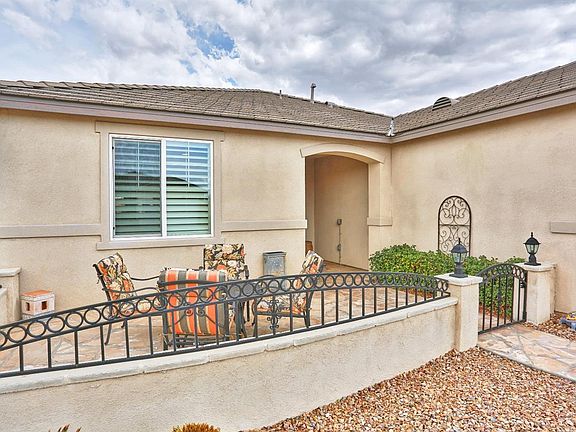 Beautiful and well cared for home in Del Webb located on the Golf Course, gorgeous views. This amazing home has many amenities and upgrades. The interior features include gorgeous kitchen with granite counter tops, large island with breakfast seating, stunning cabinets, stainless appliances, walk in pantry, upgraded tile flooring, adjacent to kitchen is secondary dining area and spacious living room with ceiling fan and rear access to the beautiful patio. All rooms are spacious and have custom window shutters. There are 2 bedrooms an office plus formal dining room so you could make additional bedrooms if needed. The bathrooms are luxurious and feature granite counter tops, tall vanities. generous lighting and the master bath has a large step in shower. This home has a very desirable and functional floor plan. The exterior features include fantastic front courtyard perfect for morning coffee, while enjoying the mountain views. The rear yard backs up to the golf course, fabulous patio with ceiling fan and mountain views. This is a must see home with pride of ownership !