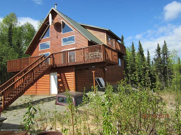 Spacious chalet style full-time or recreational home with over 200' of lake frontage on popular Rainbow Lake in Willow. Soaring wood ceilings with lots of wood accents through-out. Granite counters in Kitchen. Master Suite with double walk in shower. Great level lake frontage only 75+' from the home, large dock. Rainbow Lake is unrestricted so bring all of your toys, motorized or not.