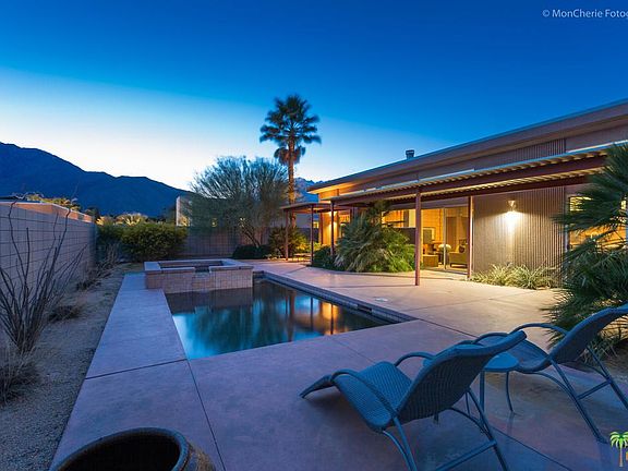 Find your ZEN in this Fantastic MODERN and HIP Palm Springs home , offering both a balanced and appealing setting perfect for relaxing and enjoying the peace and tranquility that living in Palm Springs brings. Split floor plan offers two spacious masters for privacy and an office / den at the front of the home for a quiet space to work. Large, Open and Bright concept with lots of Natural light. Great home for entertaining with space to spread out. Enjoy the Magnificent views of Mt. San Jacinto from your South facing back yard while taking a swim or soaking in your spa. Viewing the Tram lights in the evenings is extra special while enjoying a cocktail or two from your patio. Most furniture included with exceptions. NO HOA and on FEE land. (you own it) This home has the perfect layout and setting to make a Terrific Palm Springs vacation rental...OR... just the perfect place to call Home.