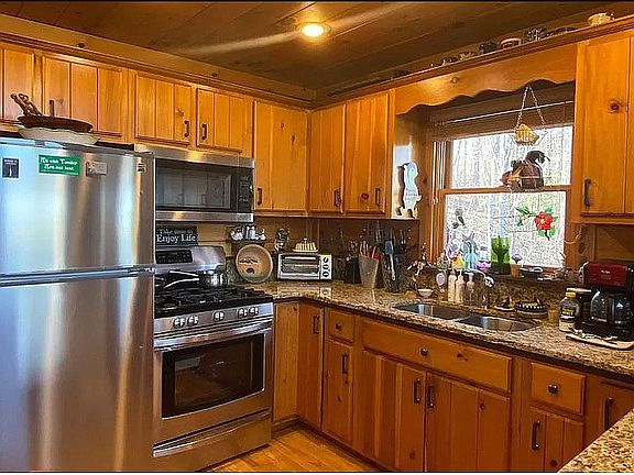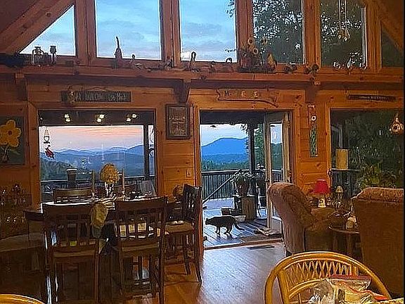 Beautiful Mountain Chalet. Owner built in 2003. Long range year round views. Glass windows on view wall with huge deck. Hardwoods and tongue & groove throughout. Stone gas fireplace that can be converted to log. 2 Bedroom/2Bath. Main level has spacious bedroom with huge closet and spacious bathroom with a separate shower/jacuzzi bath and stackable washer dryer closet . Kitchen has separate pantry. Hugh loft master bedroom with walk-in closet, separate shower/jacuzzi bath. Fully finished 12 foot ceiling basement with 1/1 apartment with separate entrance and deck that rents for $1000-$1200 month, if you choose.