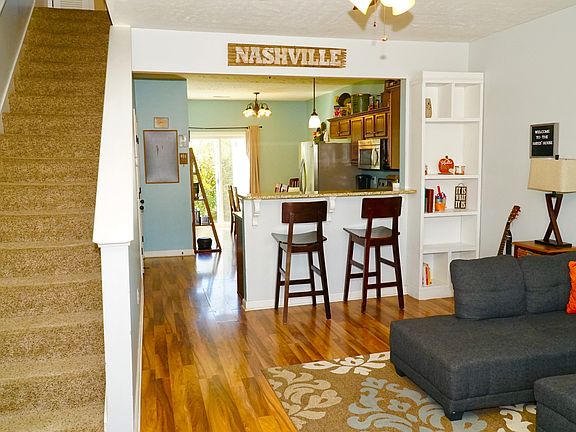 Beautiful Townhome on an end unit located less than 10 minutes from the airport, 20 minutes from downtown Nashville. Beautiful floorplan. Kitchen includes granite and stainless steel appliances. Two spacious bedrooms with two full bathrooms with tile and granite. Hardwood floors, vaulted ceilings in each bedroom, 9 ft ceilings, small storage room located on patio.